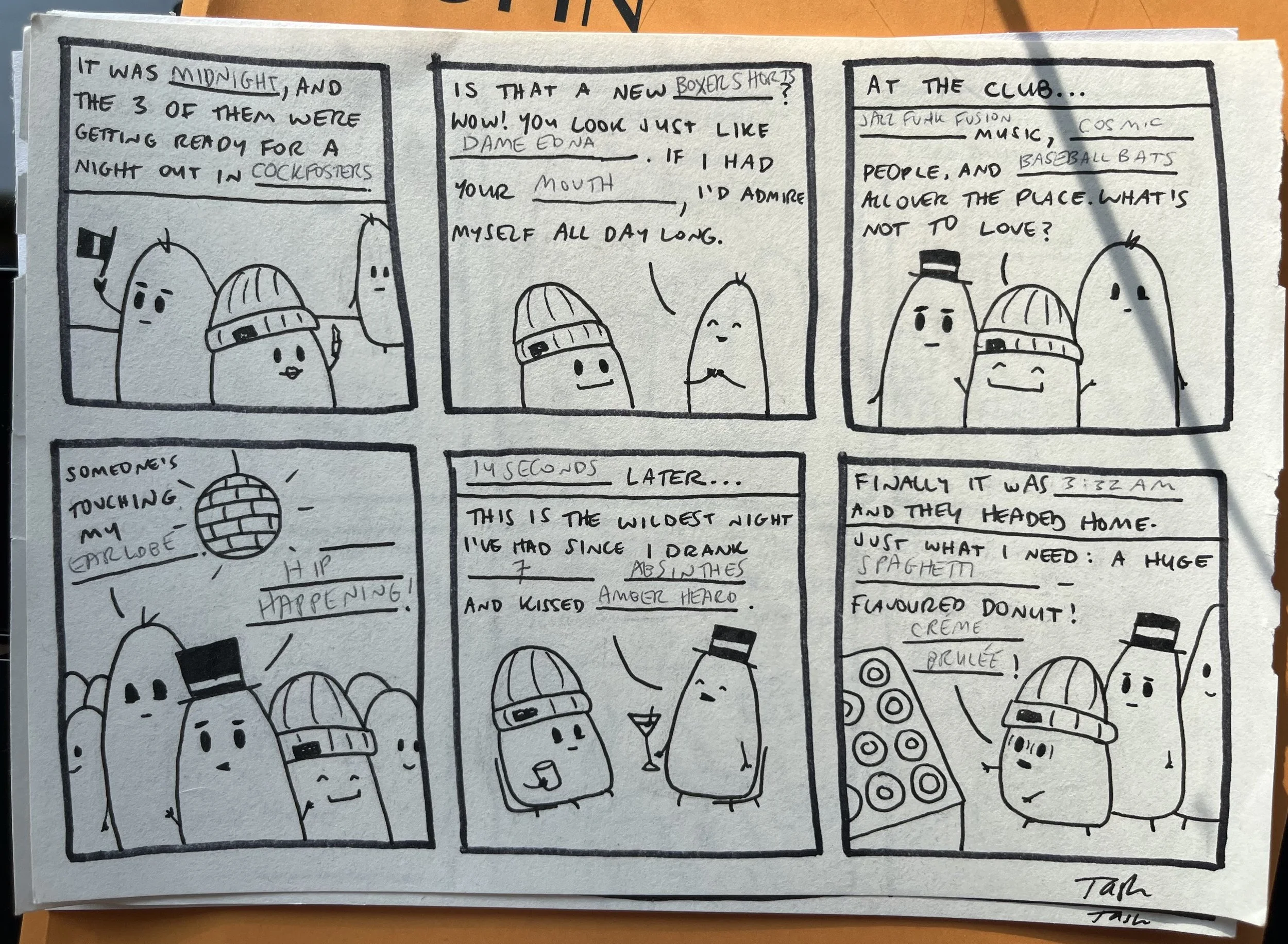 I love making Mad Libs-style comics — I ask friends for words to fill in the blanks, without letting them see the comic first. Sometimes it gets weird.